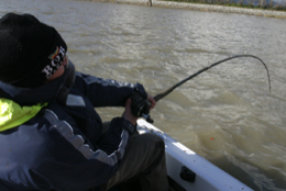 Så sker det. De større fisk trak ud mod vores agn. Jeg satte krogen i en god fisk som gav mig den fiskeoplevelse, som jeg var rejst langt for at opleve! Lange seje udløb, flere spring ud af vandet. Fisketid hvor min manglende fysik viste sig. Totalt gennemsyrede arme, smerte i ryggen og sved i øjene. Der var fedt. Inde på bredden måler vi støren til 201 cm. Tilbage på spottet - der var lagt markør ud! Det virkede helt urealistisk - jeg krogede endnu en basse. Samme senaire som før gentog sig. Længde 211 cm. Klaus Aaes fejlkrogede desværre efterfølgende to fisk på henholdvis anslået længde 200-210 og 240-250 cm. Klaus var helt nede, men 3 gang lykkedes det for Klaus at kroge korrekt. Længde 209 cm. Der er bare gang i den og Jimmie landede en stør på 189 cm. Denne dag var noget af det vildeste jeg nogensinde havde oplevet. Vi agnede og kastede ud, ventede, bang - var det en på 80 eller 200 cm? Det var bare for vildt det vi havde gang i. Det var med spænding, at vi afventede de andre bådes resultater for denne dag. Sammen med svenskerne var vi i stand til at lande 9 fisk på over 2 meter. inklusiv de 2 fejlkrogninger på det pågældende spot. Henrik fangede også stør over 2 meter den pågældende dag. Resten af fiskeferien gik slag i slag. Tabte fisk, små fisk, store fisk, frustration, glæde, alt hvad der høre til en god fiskeferie. Vi fangede mange stør og forventningerne var indfriet for alle deltagerne. Dog vil jeg lige nævne, at der er alt for meget fokus på fiskene over de 2 meter, det kan godt være at det er måler grænsen, men mindre stør gør det også godt. Og jeg er overbevist om, at vi alle fik mere og mere ondt i kroppen i løbet af de 8-9 fiskedage på Fraser River. Cirka 16 mand på 6 både fangede i alt 819 stør med 29 over 2 meter. Normal fangsten for 8-9 dages fiskeri er 400 stør. Guiderne gav udtryk for at det var det vildeste fiskeri nogensinde. Det var en fiske-rejse som jeg til enhver tid vil anbefale til andre med hang til Big game. Hotellet, bådene, guiderne, naturen, ja selv de andre lystfiskere var toppen - fed tur som vil blive gentaget i 2008. Sidste kommentar.: Grejet var tungt og støren river til, så guiden sagde til dig når du startede op.: You drop it - you buy it! Og de personer, som forlader morgenbordet på Best Western Rainbow Country inn Hotel sulten, skal søge professionel hjælp.